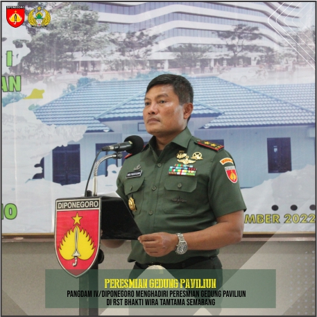 Semarang,Selasa,15 November 2022 Panglima Kodam IV/Diponegoro Mayjen TNI Widi Prasetijono meresmikan Gedung Paviliun Diponegoro Tahap 1 di Rumah Sakit Bhakti Wira Tamtama Semarang. Turut hadir pada acara tersebut Kakesdam IV/Diponegoro Kolonel Ckm Dr.Bima Wisnu Nugroho,Sp.THT,M.Kes,M.A.R.S,Karumkit Tk.III Bhakti Wira Tamtama dan beberapa pejabat lainnya.