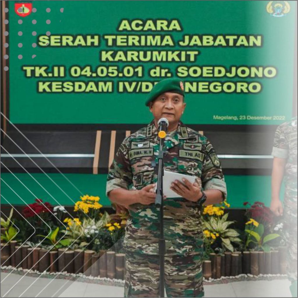 Kepala Rumah Sakit Tk.II dr. Soedjono dari pejabat lama Kolonel Ckm dr. Deddy Firmansyah, Sp.OT ke pejabat baru Kolonel Ckm dr. Shohibul Hilmi, Sp.OT (K) yang di pimpin oleh Kakesdam IV/Diponegoro