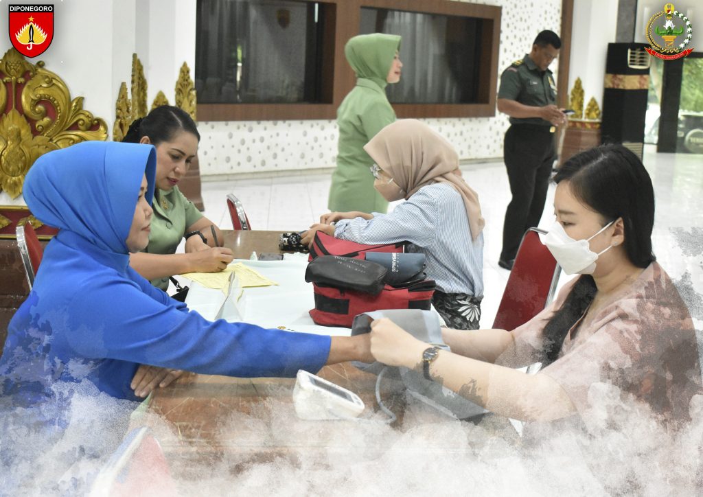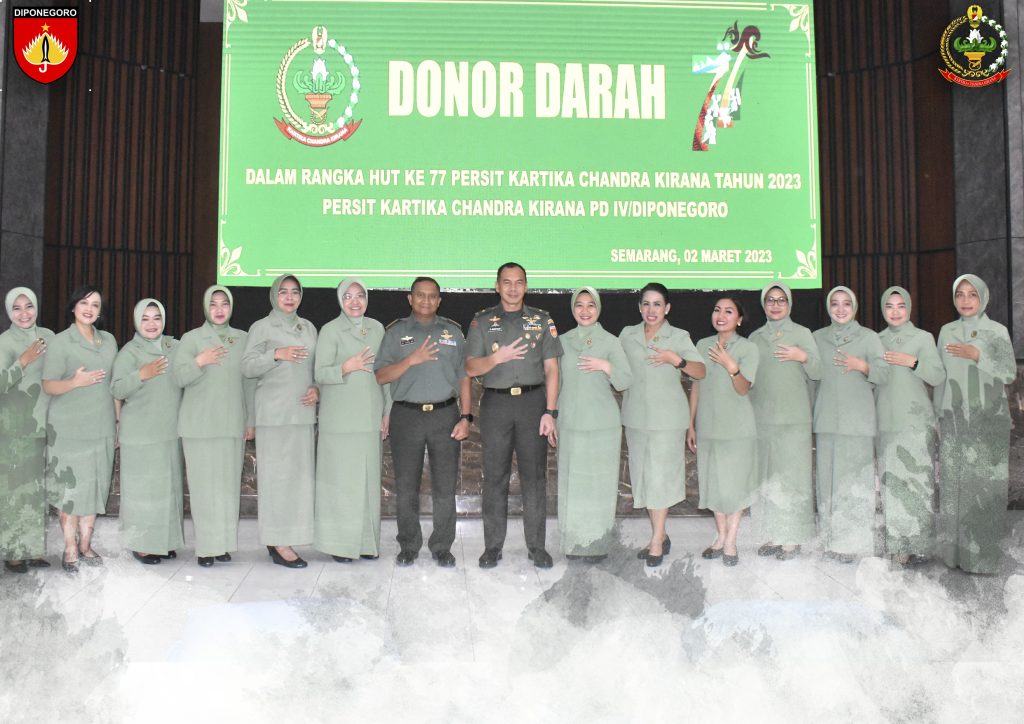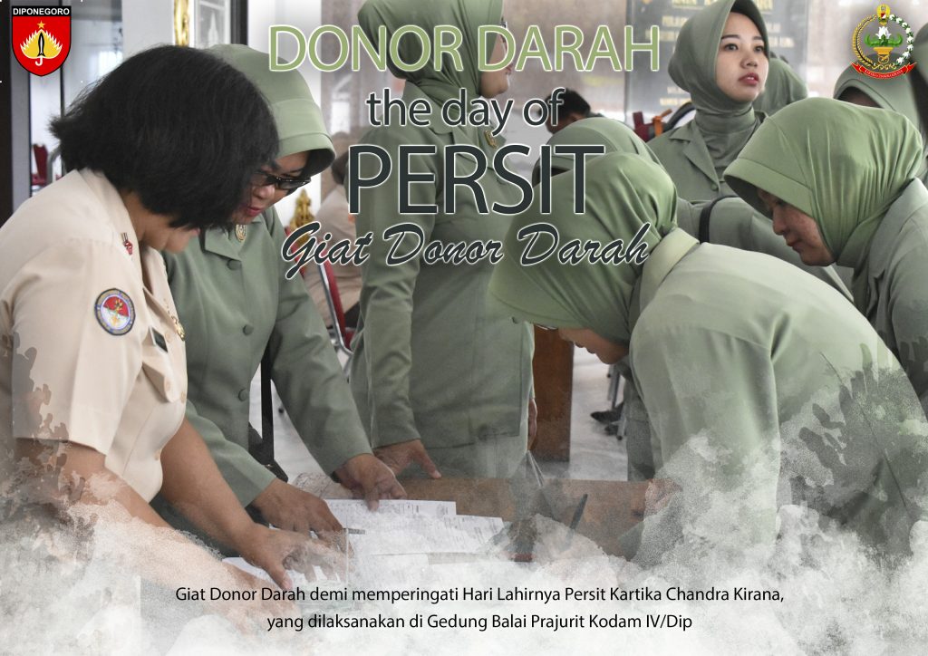 Giat Donor darah yang dilakukan Ibu Persit Chandra Kirana PD IV/DIP dalam rangka memperingati HUT PERSIT yang ke 77 dilaksanakan secara lancar, kegiatan tersebut dilaksanakan di Gedung Balai Prajurit Kodam IV/DIP. Bukan hanya Ibu2 Persit saja yang melaksanakan Giat Donor Darah Tersebut. Ada Militer , PNS , Dan Purnawirawan